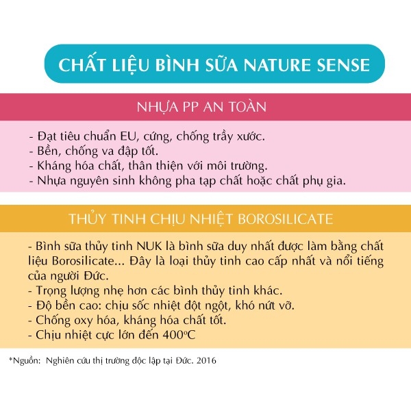 Chất liệu: Bình làm từ thủy tinh cao cấp chịu nhiệt Bolisicate, núm ti làm bằng silicone