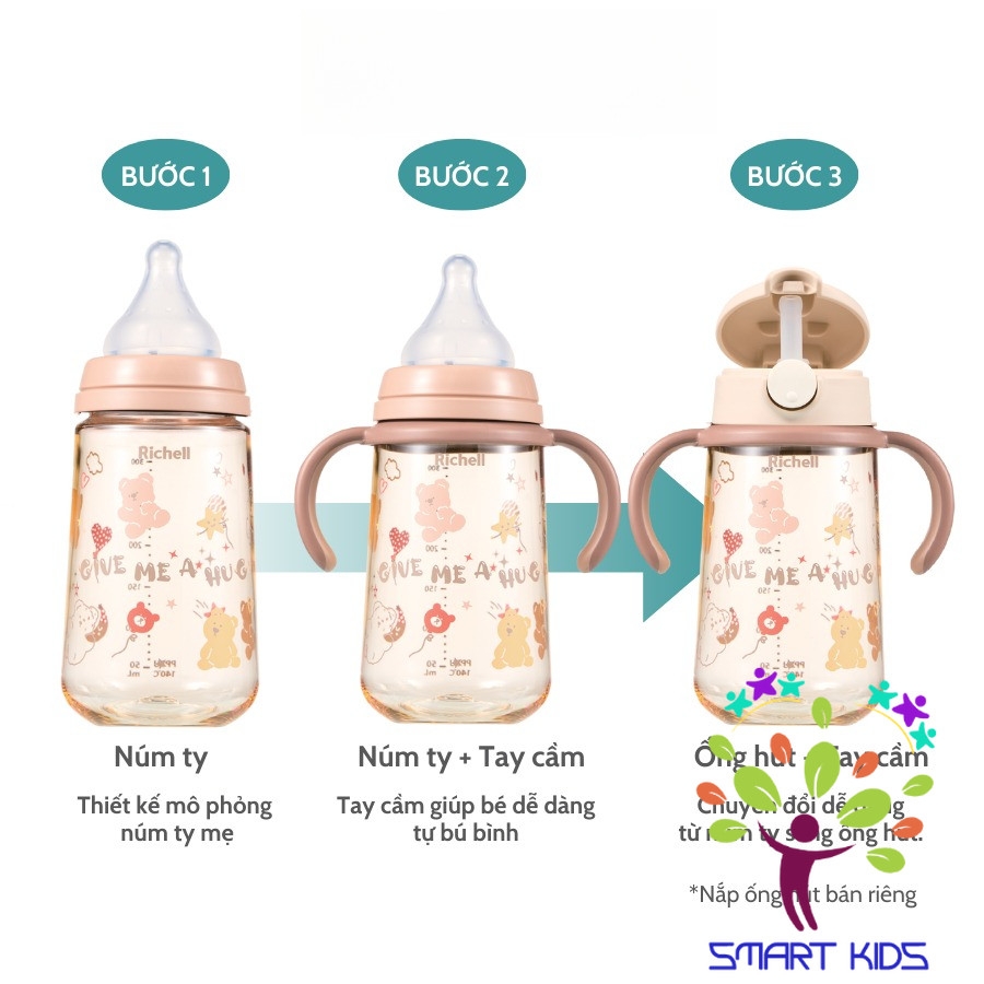 2/ Bé tự cầm bình bú sữa: gắn thêm tay cầm để bé dễ dàng tự cầm bình uống (tay cầm có ở loại PPSU).