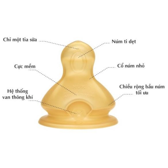 Hệ thống van thông khí NUK: Cho phép sữa chảy đều mà bé không nuốt phải khí thừa, hạn chế tối đa hiện tượng chướng bụng, đầy hơi, nôn trớ