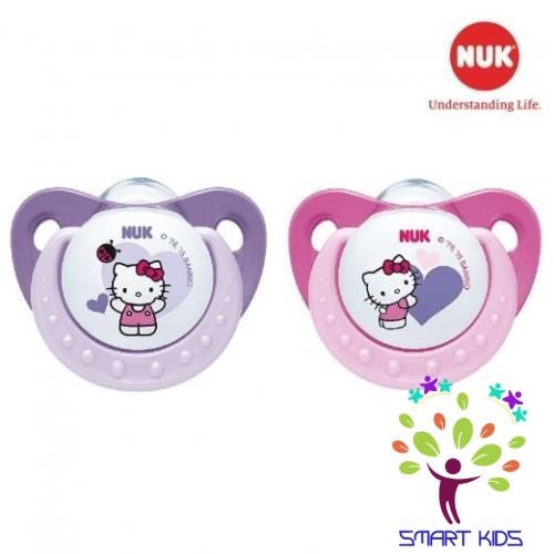 Ti giả NUK Sleeptime có họa tiết nhân vật Hello Kitty siêu đáng yêu, được cải tiến với bề mặt nút tròn rộng và mỏng nhằm giảm áp lực khi bé nằm nghiêng hay nằm sấp, phù hợp dùng cho ban ngày và các giấc ngủ ngắn.
