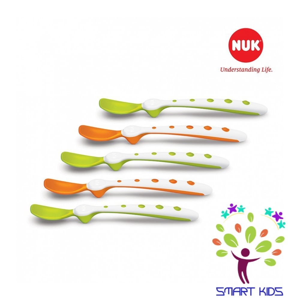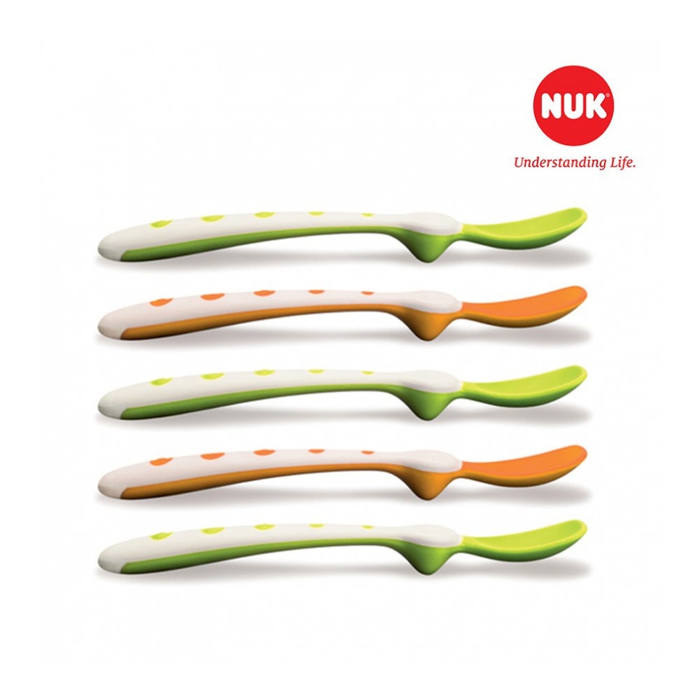 •	Thìa mềm NUK được phân tán trọng lượng đồng đều không làm cho bát/lọ bị lật khi vẫn để thìa bên trong. Thìa có màu sắc vui nhộn khiến cho bữa ăn trở nên thú vị hơn.