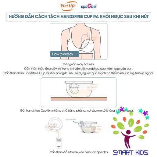 Tạo cảm giác thoải mái khi hút sữa Dễ dàng hút sữa hơn để làm việc nhà và văn phòng. Dễ làm sạch, vệ sinh dễ dàng. Cups – Giống một cái chén nhựa bình thường Nên không bị soi mói, dòm ng Giữ được đến 250ml mỗi Cup và không kéo ngực của bạn xuống (có áo ngực đỡ) Có thể trông em bé khi hút sữa Dễ tháo khi bị gián đoạn hút sữa, gắn lại nhanh chóng Nhập khẩu chính hãng từ Hàn Quốc Bộ Cup Hút Sữa Rảnh Tay speCtra Handsfree Bộ cup hút sữa rảnh tay speCtra Handsfree giúp các mẹ đang hút sữa có thể làm các công việc khác và với chức năng quan trọng nhất đó là sau khi sinh con xong các mẹ không bị trình trạng ngực chảy xệ mà còn giúp tạo ngực căng tròn giữ gìn vóc dáng vòng 1 các mẹ sau sinh. Thêm vào đó, bộ cup hút sữa rảnh tay speCtra Handsfree còn là công cụ hỗ trợ giúp các mẹ hút sữa mà không cần phải cầm hai bình hút sữa vừa mất thời gian và bất tiện cho mẹ và cả các bác sĩ chăm sóc sản phụ sau sinh. Là dụng cụ hút sữa tiện lợi tuyệt vời Phương pháp hút sữa thông thường dùng chai và phễu để hút, và bạn phải dùng tay giữ hoặc áo hút sữa rảnh tay chuyên dụng Với bộ dụng cụ hút sữa rảnh tay Spectra cho phép mẹ úp trong bầu ngực để hút sữa mà không cần cởi bỏ áo ngực để hút sữa một cách thoải mái trong lúc làm việc nhà hay tại cơ quan. Sản phẩm tương thích với hầu hết các dòng máy hút sữa đang có trên thị trường như Spectra, Medela, Philips Avent, Unimom…từ loại hút điện đơn đến điện đôi. Thiết kế thông minh, tinh tế Sản phẩm có thiết kế độc đáo cho phép mẹ úp trong bầu ngực mà không cần cởi bỏ áo ngực để hút sữa một cách thoải mái trong lúc làm việc nhà hay việc cơ quan. Đặc biệt khi gắn bộ chén (cups) hút sữa rảnh tay Handsfree Spectra vào các dòng máy hút sữa đều không làm giảm lực hút. Cho mẹ cảm giác êm ái với đệm silicon giáp massage bầu ngực để sữa ra nhanh hơn và đều hơn. Sản phẩm được thiết kế ôm vừa vặn bầu ngực của mẹ với chất liệu silicon mềm mại, cho mẹ có cảm giác êm ái và nhẹ dịu. Bộ dụng cụ được làm từ chất liệu an toàn không chứa BPA nên các mẹ yên tâm không ảnh hướng tới bé cũng như mẹ. Sản phẩm có thiết bị chặn sữa đi kèm nằm bên trong cup không gây mất thẩm mỹ. Không bị bật tung mặt nạ khi dùng ở level cao của các dòng máy hút sữa, nên các mẹ không phải bận tâm sữa sẽ vào động cơ máy khi hút. Bộ sản phẩm bao gồm: - Spectra Handsfree Cups: 1 bộ gồm 2 chén - Dung tích: 250 ml / 1 cup; 500 ml / 1 bộ - Phễu chụp ngực: 2 cái - Size 24mm, 28mm - Phễu kết nối với cúp: 2 cái - Phễu kết nối với bình trữ sữa cổ rộng: 2 cái - Valves silicon 1 chiều: 2 cái - Protector (van chống sặc): 2 cái - Dây khí: 2 cái