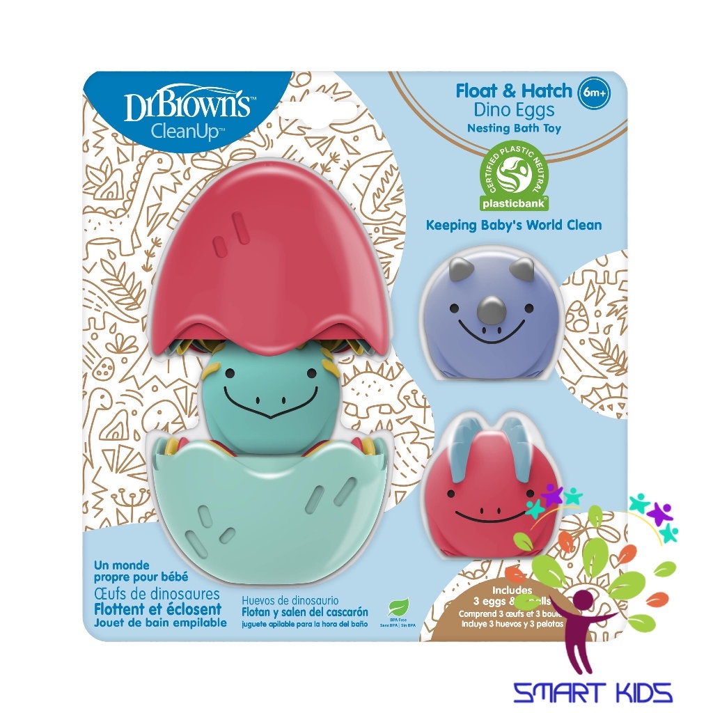 + Dr.Browns xin giới thiệu đến ba mẹ Bộ đồ chơi thả bồn tắm cho trẻ từ 6 tháng trở lên gồm 3 quả trứng khủng long. Ba mẹ sẽ không còn lo bé sợ tắm hay lản tránh mỗi lần đi tắm nữa ạ. + COMBO được chia làm 3 quả trứng khủng long to và xếp chồng trứng vào nhau để bảo quản dễ dàng. + Sản phẩm được chứng nhận nhựa đảm bảo an toàn cho bé. + Sản phẩm gồm có 3 quả trứng khủng long và 3 quả bóng. +Mang đến cho bé sự thích thú khi tắm khi trứng mở trứng ra và bé có thể xúc và nối lại trứng.3 con khủng long nằm trong 3 quả trứng. + Bé chơi với những món đồ chơi trong bồn tắm giúp cải thiện kỹ năng vận động và phối hợp tay-mắt của bé, đồng thời bộ 3 quả trứng khủng long có những màu sắc tươi sáng và kích thích thị giác của bé. + Những đồ chơi làm tổ này cũng có thể được sử dụng làm đồ chơi bể bơi hoặc bàn nước, để vui chơi trong và ngoài bồn tắm!