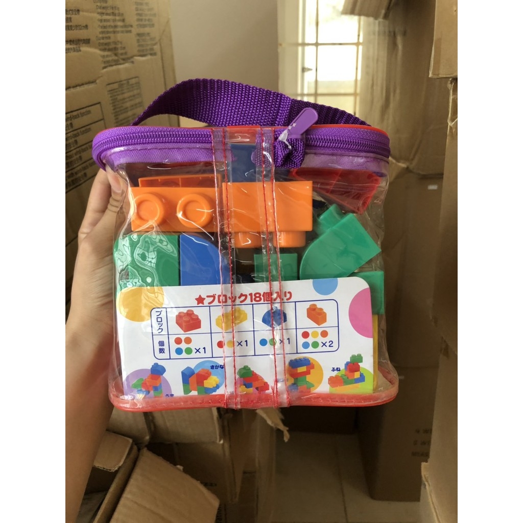 THÔNG TIN TỔNG QUAN. Bộ xếp hình là đồ chơi thông minh cho trẻ từ 1,5 tuổi giúp bé rèn luyện các kỹ năng khác nhau. 1. Với 18 viên xếp hình, Bé có thể sáng tạo nên các công trình khác nhau, giúp phát triển trí tưởng tượng, sáng tạo bé. 2. Các viên xếp hình có nhiều hình dáng và màu sắc khác nhau, giúp Bé ghi nhớ các hình khối và màu cơ bản. 3. Thông qua việc lắp ghép, bàn tay bé cũng trở nên linh hoạt, khéo léo hơn. 4. Chất liệu, thiết kế an toàn - Đồ chơi làm từ chất liệu nhựa PP an toàn, KHÔNG sử dụng sơn phủ độc hại. - Thiết kế đồ chơi không có cạnh sắc nhọn, không sử dụng các chi tiết nhỏ như ốc vít các miếng ghép có kích thước lớn nên Mẹ hoàn toàn có thể yên tâm khi Bé ngậm mút. 5. Bộ xếp hình có kèm hình hướng dẫn các mẫu hình để bố mẹ hướng dẫn bé cách lắp một số mẫu ban đầu. Bé sẽ chơi thật vui cùng bạn bè/gia đình. 6. Bộ xếp hình được bỏ vào túi có quai xách giúp cất gọn gàng/mang đi tiện lợi. _____________________ THÔNG SỐ KỸ THUẬT. 1. Chất liệu: Nhựa PP không BPA 2. Tuổi sử dụng: Trẻ từ 1,5 tuổi 3. Kích thước (mm): Dài x Rộng x Cao 190x80x170. 4. Hãng sản xuất: Toyroyal Nhật Bản. 5. Sản xuất tại: Trung Quốc.