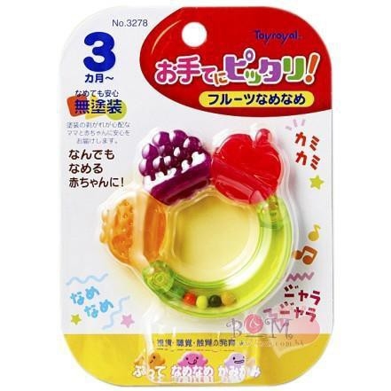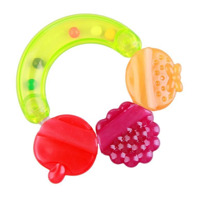 Cắn răng với hình trái cam, nho và táo cùng màu sắc ngộ nghĩnh.Thiết kế bề mặt sản phẩm với các chi tiết đục lỗ hoặc trơn giúp Bé vui thích cắn hay ngậm. Phần tay cầm có các hạt bi nhựa phát ra tiếng kêu vui tai khi lắc đi lắc lại. Bé học cách phân biệt màu sắc và hình dáng với cắn răng hoa quả. Cắn răng hoa quả được làm bằng nhựa chống khuẩn, đảm bảo vệ sinh an toàn cho Bé.