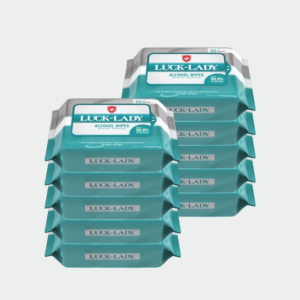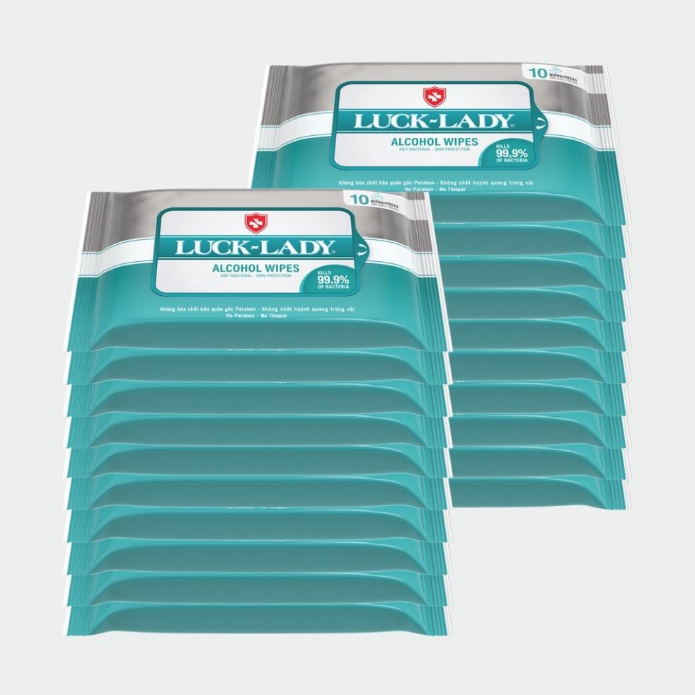 Combo 10 gói khăn ướt Luck Lady cồn (10 tờ/ gói)