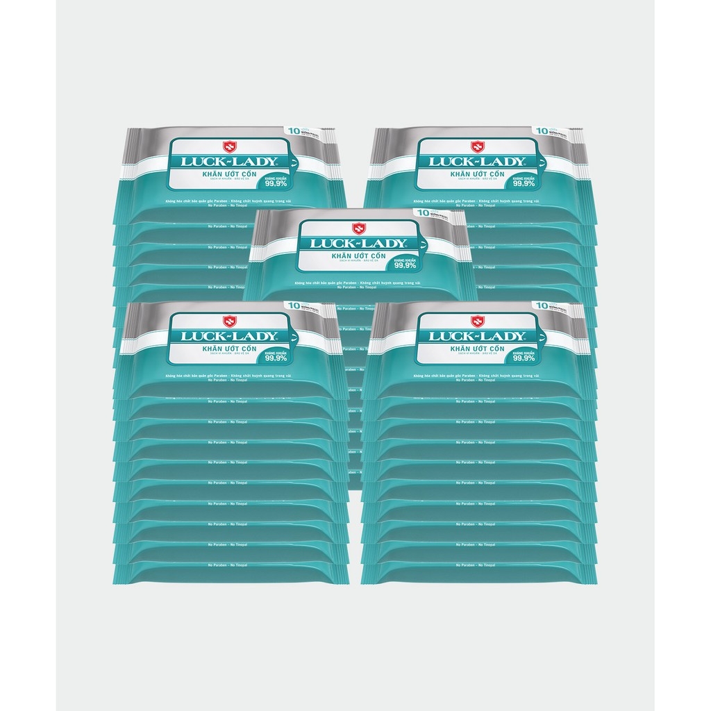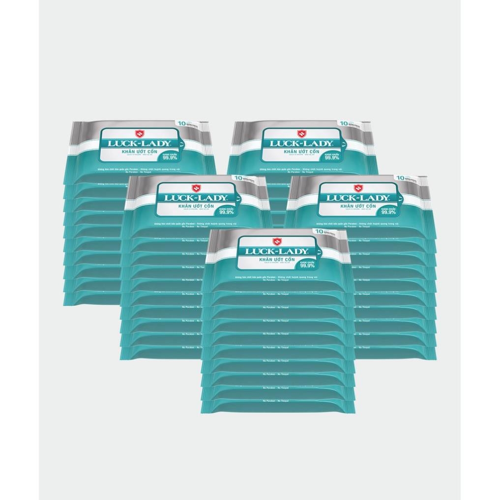 Combo 50 gói khăn ướt Luck Lady Cồn 10 tờ/ gói