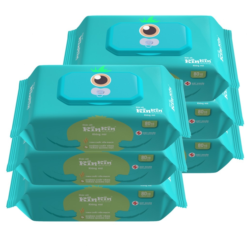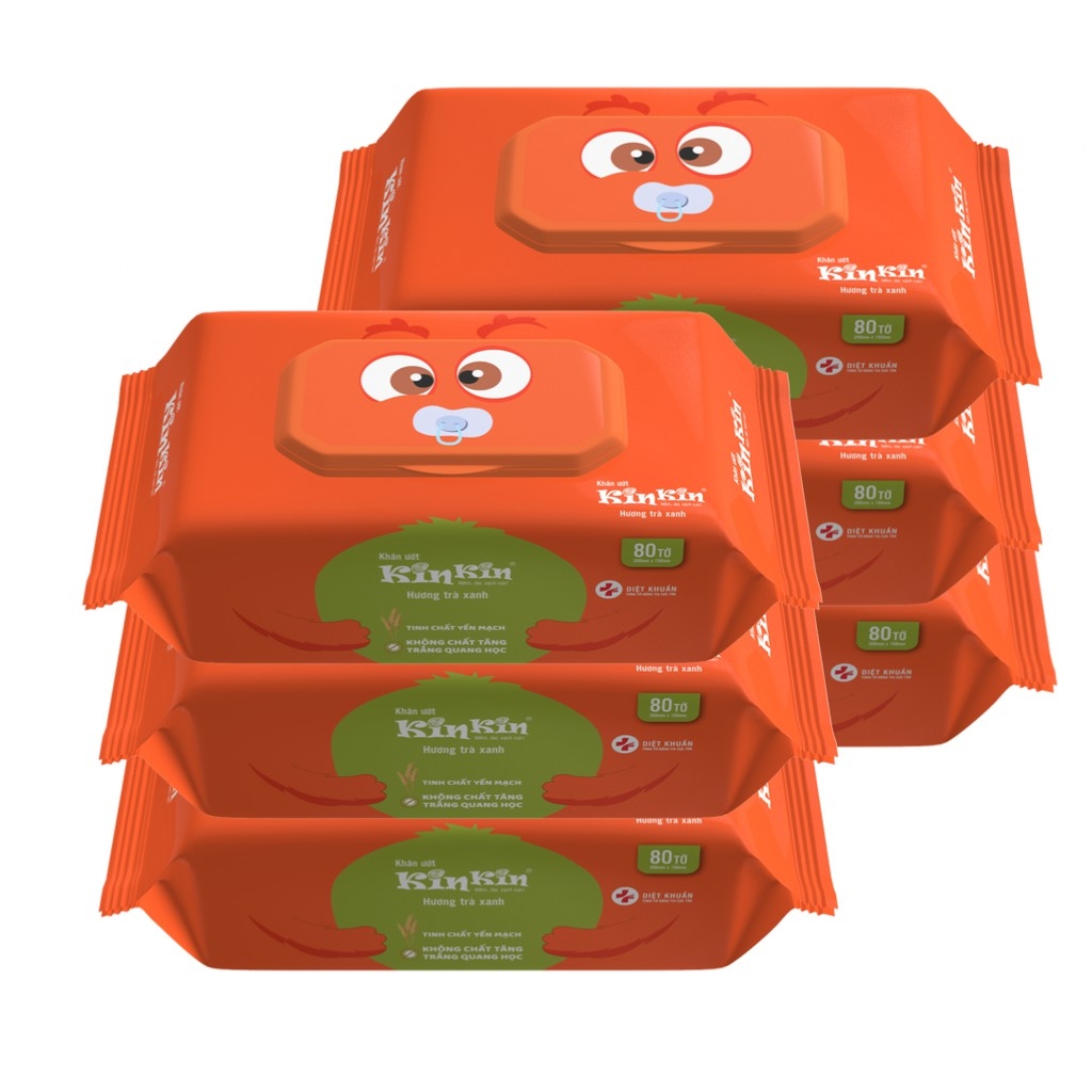 Combo 6 gói Khăn ướt Kin Kin 80 tờ/gói mùi trà xanh/không mùi, an toàn tiện lợi