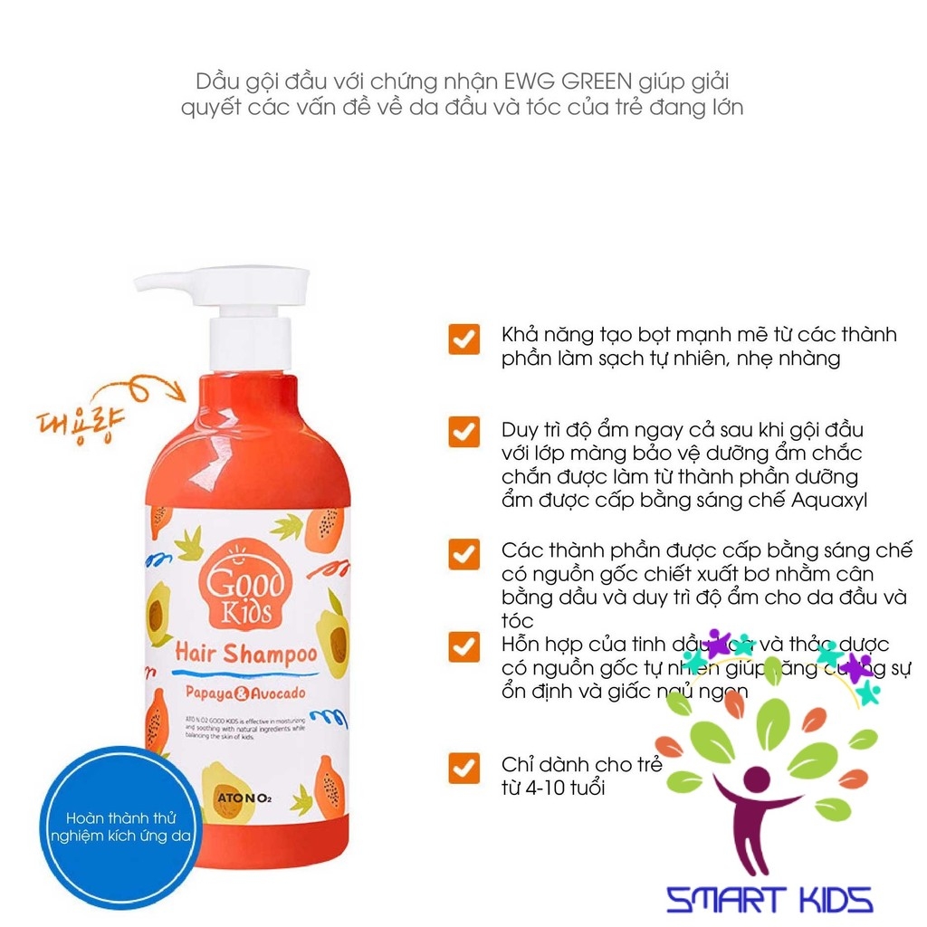 Dầu Gội đầu GOOD KIDS ATONO2 Cho Bé Từ 4 Tuổi, Duy Trì độ ẩm, Loại Bỏ Bã Nhờn Giúp Da đầu Và Tóc Mềm Mại Sạch Sẽ – 500g