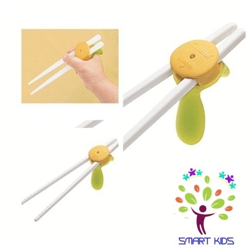1. Khi em bé 2 tuổi, bé có thể cầm một chiếc thìa với ngón cái hướng lên trên. Lúc này sử dụng đũa ăn Combi có tay cầm để tập cho bé quen dần với cách giữ và mở đũa.