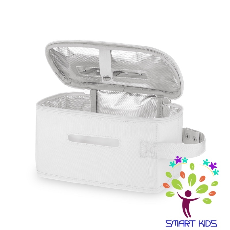 Với hộp tiệt trùng, bạn có thể tiệt trùng vật dụng nhỏ cho bé như núm ti, gặm nướu, đồ dùng cá nhân như đồng hồ, nữ trang....và cả những vật dụng lớn hơn như điện thoại, điều khiển, bàn chải đánh răng và cả bình sữa cho bé ... nhờ hệ thống đen UV Leds gắn ở nắp hộp tiệt trùng. Bạn có thể mang theo cùng bạn và bé đi khắp nơi và sử dụng dễ dàng khi cần thiết.