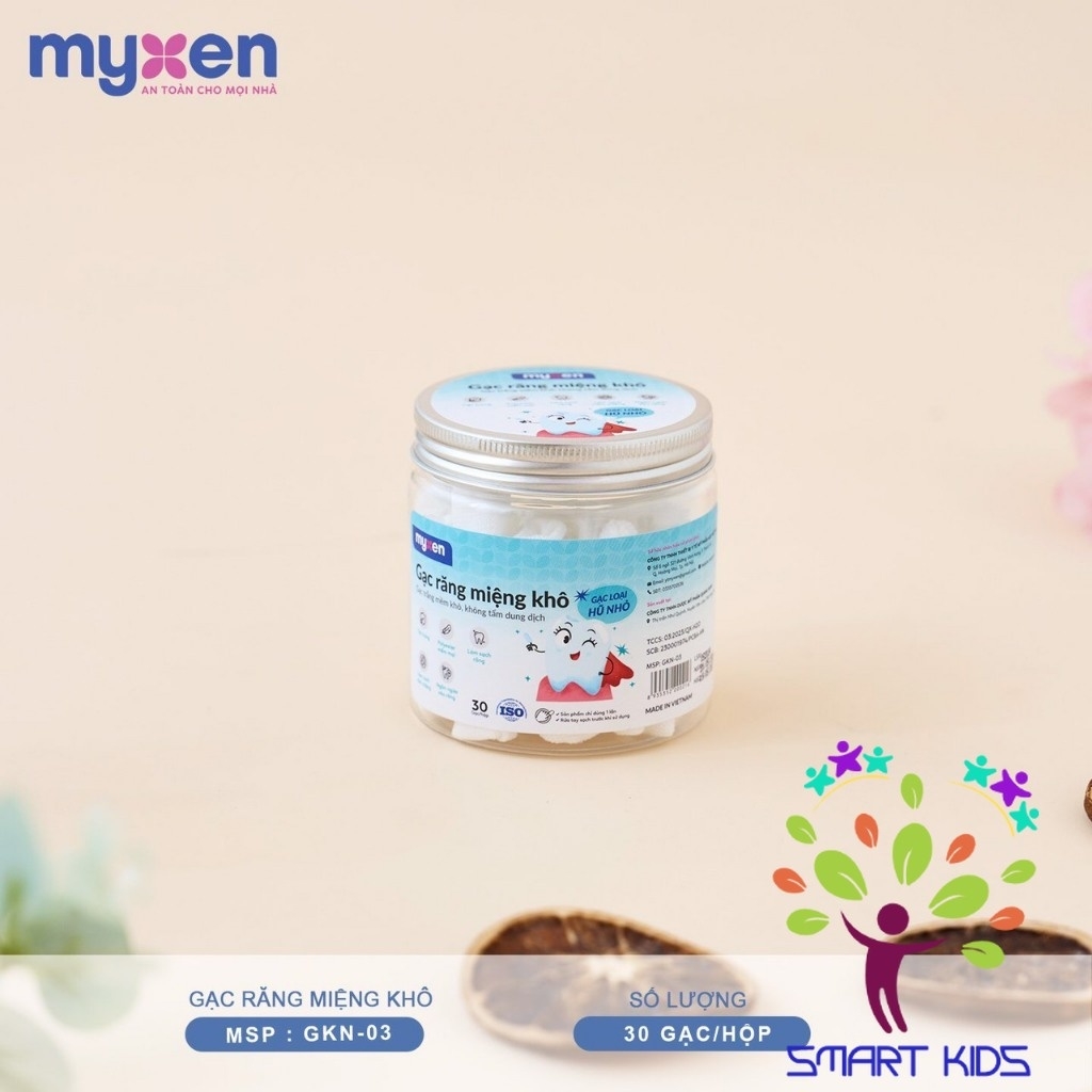 Gạc răng miệng cho bé không còn xa lạ với mọi nhà có con nhỏ nữa, em bé cần được rơ lưỡi mỗi ngày, nếu không se dễ bị nấm miệng, nhất là những bé bú mẹ. Gạc khô MYXEN được sản xuất bằng công nghệ tiên tiến giúp bảo vệ sức khỏe cho bé.  Đặc điểm + ưu điểm nổi bật: • Gạc cấu tạo sợi Polyester mèm mại • 01 gói/1 gạc khô nên thuận tiện bóc ra sử dụng luôn, đóng gói dạng hộp hợp vệ sinh. • Chủ động được dung dịch tẩm gạc để rơ lưỡi cho bé như: nước muối sinh lý, nước lá hẹ,...  Hướng dẫn sử dụng: 1. Sản phẩm chỉ sử dụng 01 lần. 2. Rửa tay sạch trước khi dùng rơ lưỡi cho bé. 3. Cho nhẹ ngón tay vào miếng gạc. 4. Nhúng gạc vào dung dịch tẩm hoặc nước ấm. 5. Rơ nhẹ nhàng quanh lưỡi. 6. Bảo quản nơi khô ráo.