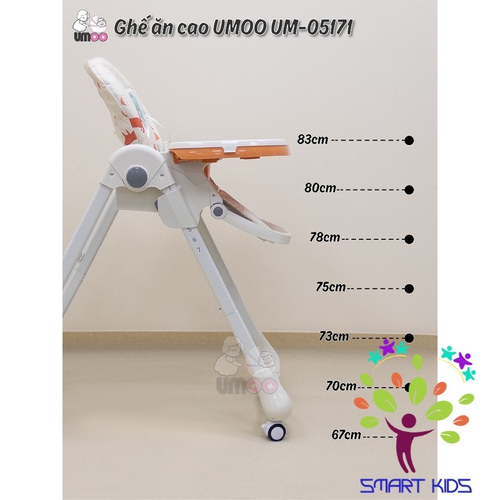 Ghế Ăn Dặm Cao Cấp Umoo Dành Cho Bé 3 Nấc Ngả 7 Nấc Cao UM-0598 UM-05171