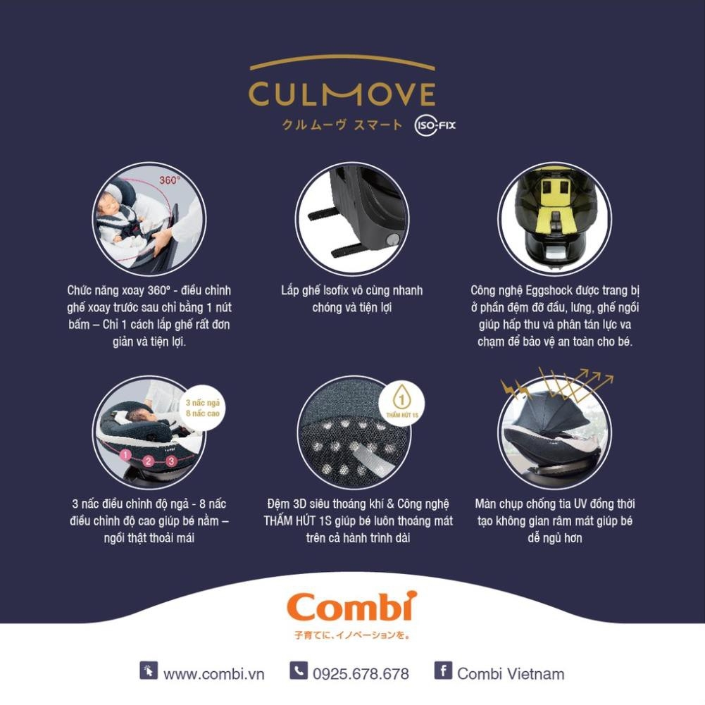 Ghế ngồi ô tô Combi Culmove xoay 360° Smart Isofix - Thêm thông minh – Thêm thoải mái.