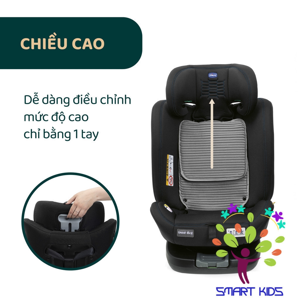 Ghế ô tô đạt tiêu chuẩn i-Size được chấp thuận sau khi vượt qua các bài kiểm tra va chạm bên nghiêm ngặt để đảm bảo an toàn cho bé. Chicco Unico Evo I-Size luôn tương thích với các loại xe được chấp thuận theo tiêu chuẩn i-Size, đồng hành cùng trẻ từ sơ sinh đến khoảng 12 tuổi.
