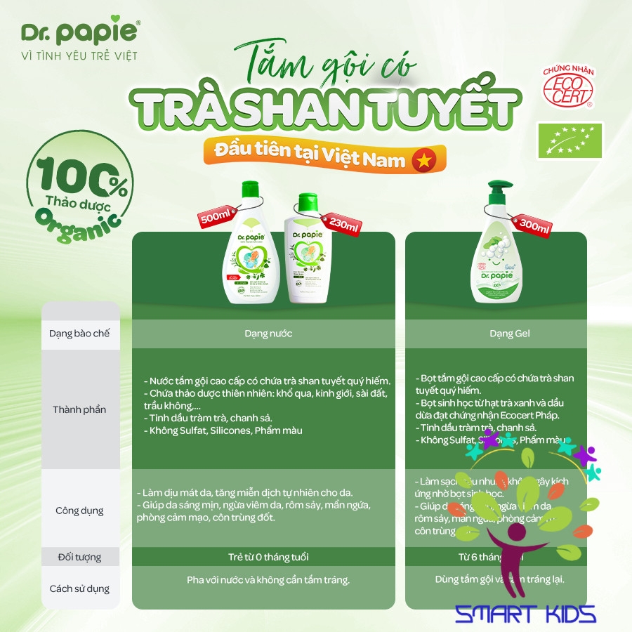 Bọt tắm thảo dược Dr.Papie dành riêng cho các bé từ 6 tháng tuổi trở lên với khả năng tạo bọt và làm sạch