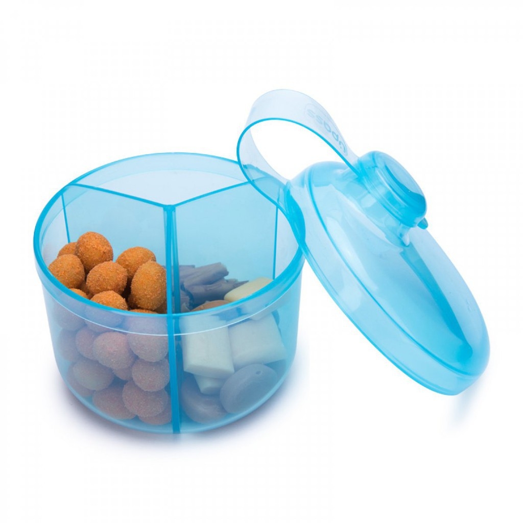 • Hộp chia sữa tròn chứa 3 ngăn đựng sữa thiết kế gọn, chặt, vệ sinh, tiết kiệm diện tích, tiện lợi.