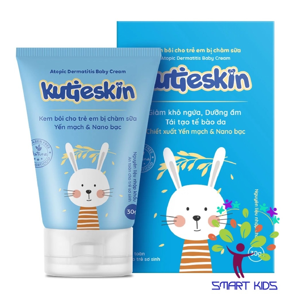 Chi tiết: Kem chàm sữa Kutieskin dành cho những trường hợp em bé bị chàm sữa (lác sữa), vi.êm da, khô ngứa, bong tróc da. Đây là giải pháp an toàn và hiệu quả nhanh nhờ chiết xuất từ những nguyên liệu chống viê.m tự nhiên, nổi trội là Nano Bạc, chiết xuất Yến Mạch, tinh nghệ trắng Nano THC và Bơ Shea Đức. Lưu ý: Nên sử dụng cùng kem dưỡng ẩm Kutieskin để đạt hiệu quả tốt nhất. Hiệu quả sau 3-5 ngày sử dụng.