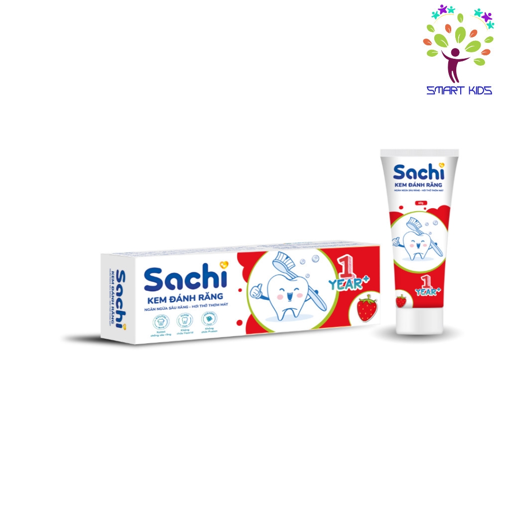 Kem đánh răng Sachi dạng tuýp giúp làm sạch, ngừa sâu răng, khử mùi hôi miệng, an toàn cho bé 60g