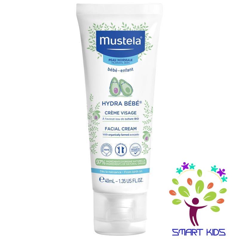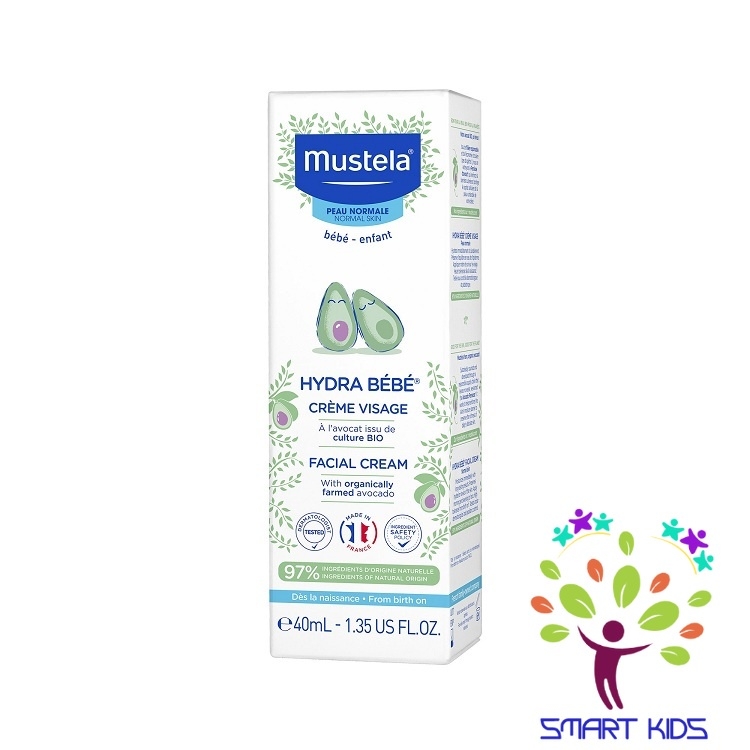 Kem dưỡng da dành cho mặt Hydra Bébé Facial Cream của Mustela thẩm thấu rất nhanh và dễ dàng nhằm cung cấp ngay lập tức độ ẩm lâu dài cho khuôn mặt đáng yêu của bé.