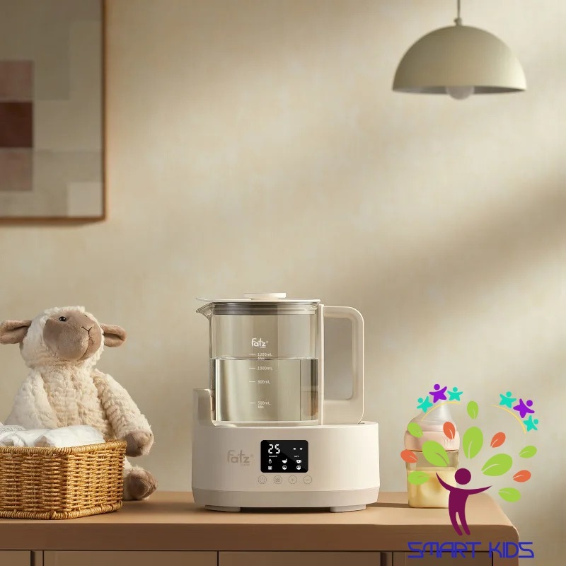 3 mức cài đặt trước ấm lên: 45ºC để pha sữa, 70ºC để pha bột ăn dặm, bột ngũ cốc, 90º để pha trà.