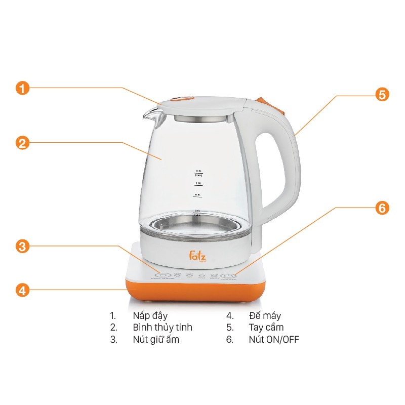- Bình nước làm từ thủy tinh cao cấp, phần đáy của nắp bình được làm từ thép không