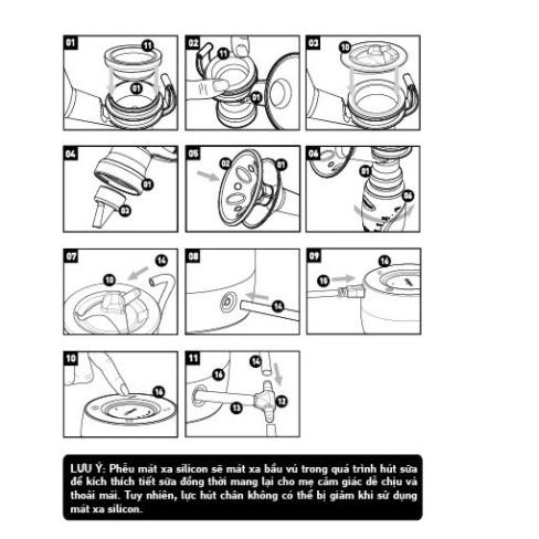 Bộ phụ kiện bao gồm: 02 Phiễu chụp vú + 02 màng mát xa silicon+ 2 Bình đựng sữa (gồm bình sữa, núm ty, nắp ngăn sữa, cổ bình, nắp đậy) + 2 Chân đế bình sữa + 1 động cơ chính + 02 màng silicon K-pop +02 nắp chụp trên + 02 van màu trắng nhỏ + 02 ống dây khí dài + 01 ống khí ngắn + 01 đầu nối chữ T + 01 dây cáp USB