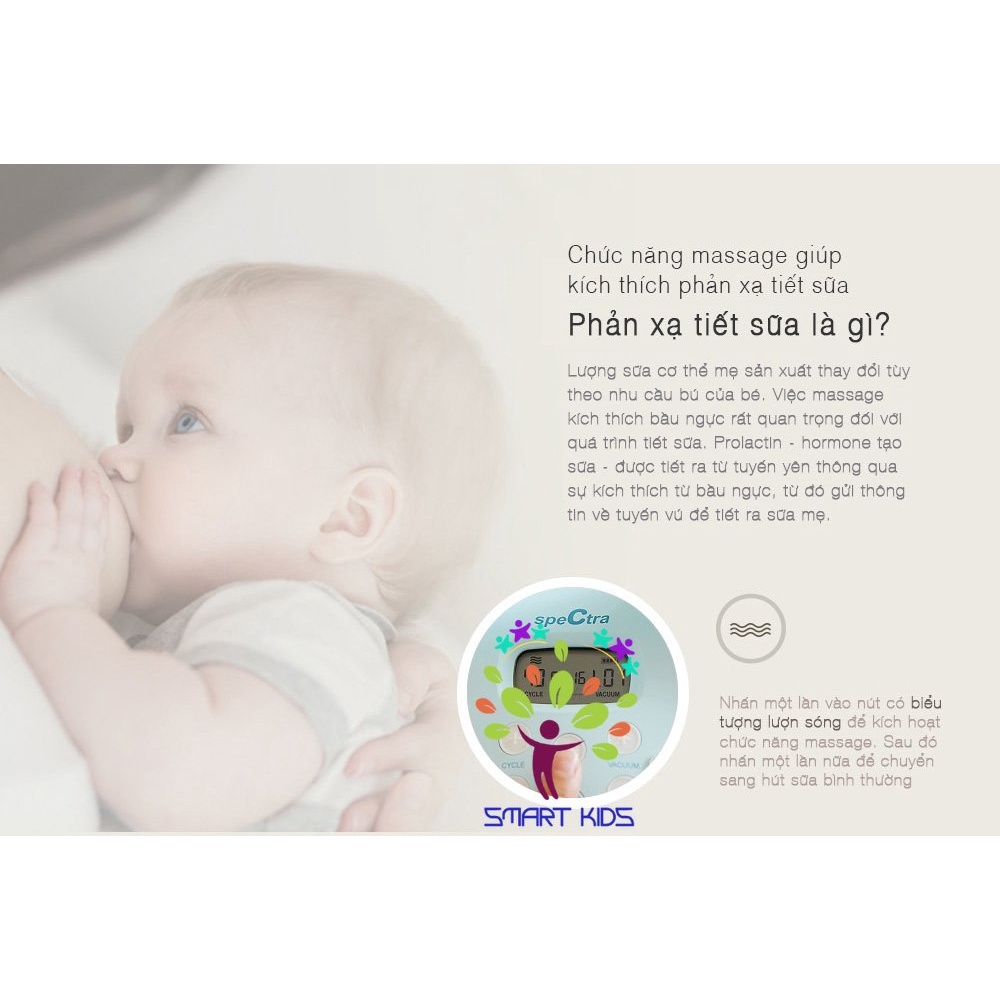 ✅ Chế độ massage kích sữa: có 5 mức điều chỉnh áp lực hút massage, chu kỳ hút 70 lần hút nhẹ/phút.