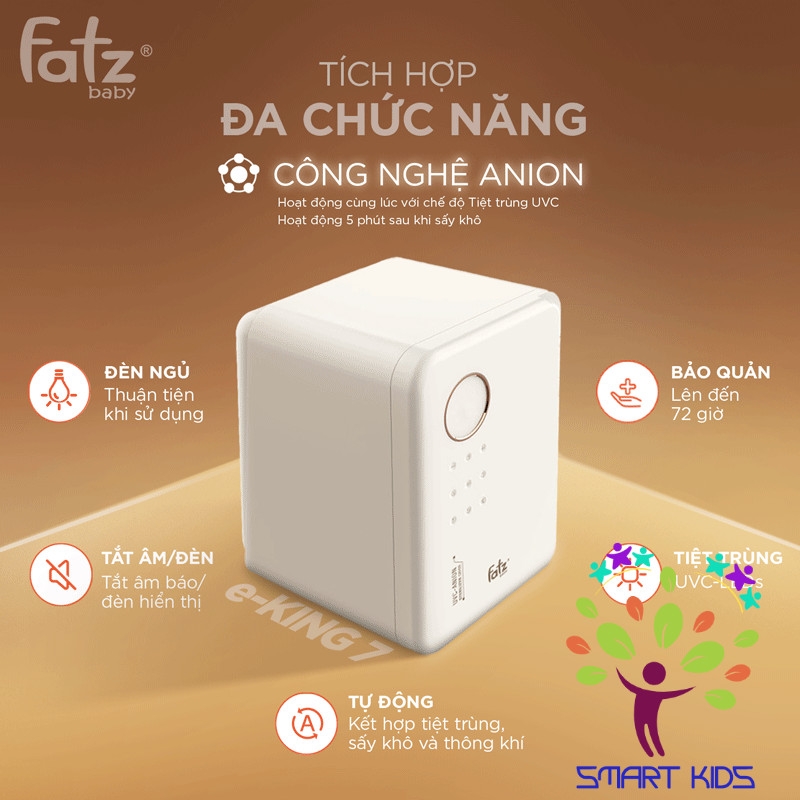 e-KING 7 – dòng máy tiệt trùng, sấy khô và khử mùi thế hệ mới của Fatzbaby, tích hợp công nghệ Anion hiện đại giúp nâng hiệu quả tiệt trùng lên một tầm cao mới. Với dung tích lớn 25L chứa tới 18 bình cổ rộng, cùng khả năng điều chỉnh nhiệt độ sấy khô linh hoạt (45°C hoặc 70°C), e-KING 7 không chỉ chăm sóc bé yêu mà còn tối ưu bảo vệ cả gia đình. Chức năng bảo quản lên tới 72 giờ, hoạt động hoàn toàn tự động và yên tĩnh, kết hợp đèn ngủ tiện lợi, giúp bạn an tâm trong từng khoảnh khắc. Đây chính là thiết bị lý tưởng cho các bố mẹ hiện đại, đề cao sự an toàn và tiện lợi tuyệt đối cho con mình.