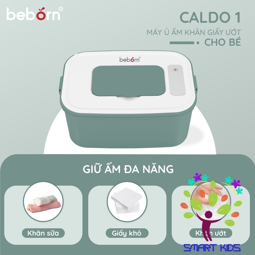 Để giữ ấm cho bé trong các giai đoạn phát triển đầu đời, Beborn cho ra mắt sản phẩm Máy ủ ấm khăn giấy ướt cho bé Caldo 1 giúp mẹ thuận tiện hơn khi thao tác vệ sinh cho bé. Máy sở hữu cơ chế gia nhiệt từ trên xuống giúp khăn được làm nóng nhanh. Dung tích khoang chứa lớn, phù hợp với mọi loại khăn ướt trên thị thường. Không những thế, máy phù hợp với cả khăn khô, và khăn sữa. Tay chốt 2 bên giúp nắp được cố định chắc chắn, hạn chế thất thoát hơn ẩm.
