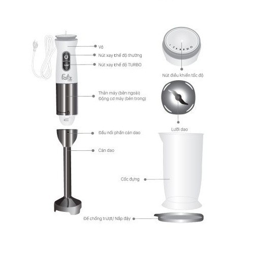 - Lưỡi trộn 4 cánh với cấu trúc đặc biệt để xay nhuyễn hoàn hảo: Lưỡi xay cải tiến, với 2 đầu lưỡi vuông góc với 2 đầu lưỡi còn lại, đảm bảo mọi thức ăn được xay nhuyễn trong tích tắc