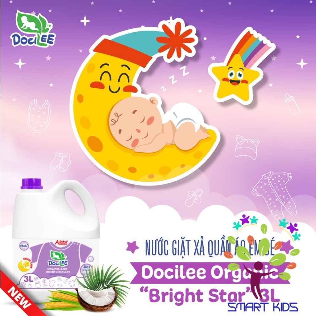Nước Giặt Xả Quần áo Em Bé Sơ Sinh Docilee Organic 1 Lít Mẫu Mới