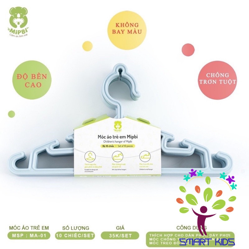 SET 10 MÓC ÁO MIPBI MỎNG CHO BÉ Mỗi chiếc móc áo đều từ nhựa nguyên sinh, an toàn cho sức khỏe. Độ bền cao, không lo giòn gãy kể cả khi sử dụng phơi ngoài trời nắng. Giúp tiết kiệm tối đa diện tích phơi đồ hay lưu trữ quần áo của bé.
