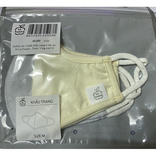 Set 2 chiếc khẩu trang 4 lớp cho bé La pomme 6m-5y