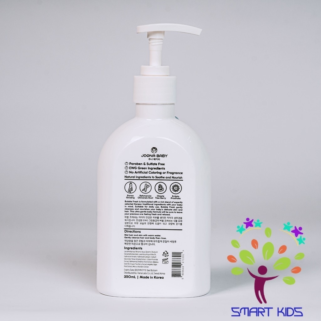 Giúp làm sạch da, tóc hiệu quả mà vẫn dịu nhẹ và an toàn tuyệt đối với bé, không gây cay mắt. Lấy cảm hứng bởi cách chăm sóc da em bé từ các bài thuốc thảo dược các bà mẹ Hàn Quốc đã sử dụng qua bao đời, Bubble Fresh chứa các thảo dược giúp hỗ trợ làm dịu các bệnh về da của bé như rôm xảy, chàm, mề đay, đồng thời dưỡng ẩm và tăng sức đề kháng cho làn da mong manh của bé.