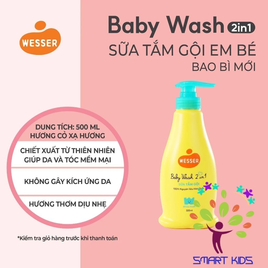 Sữa tắm gội toàn thân trẻ em Wesser 2in1 - White Musk thành phần thiên nhiên nhập khẩu Hàn Quốc (Màu xanh lá)
