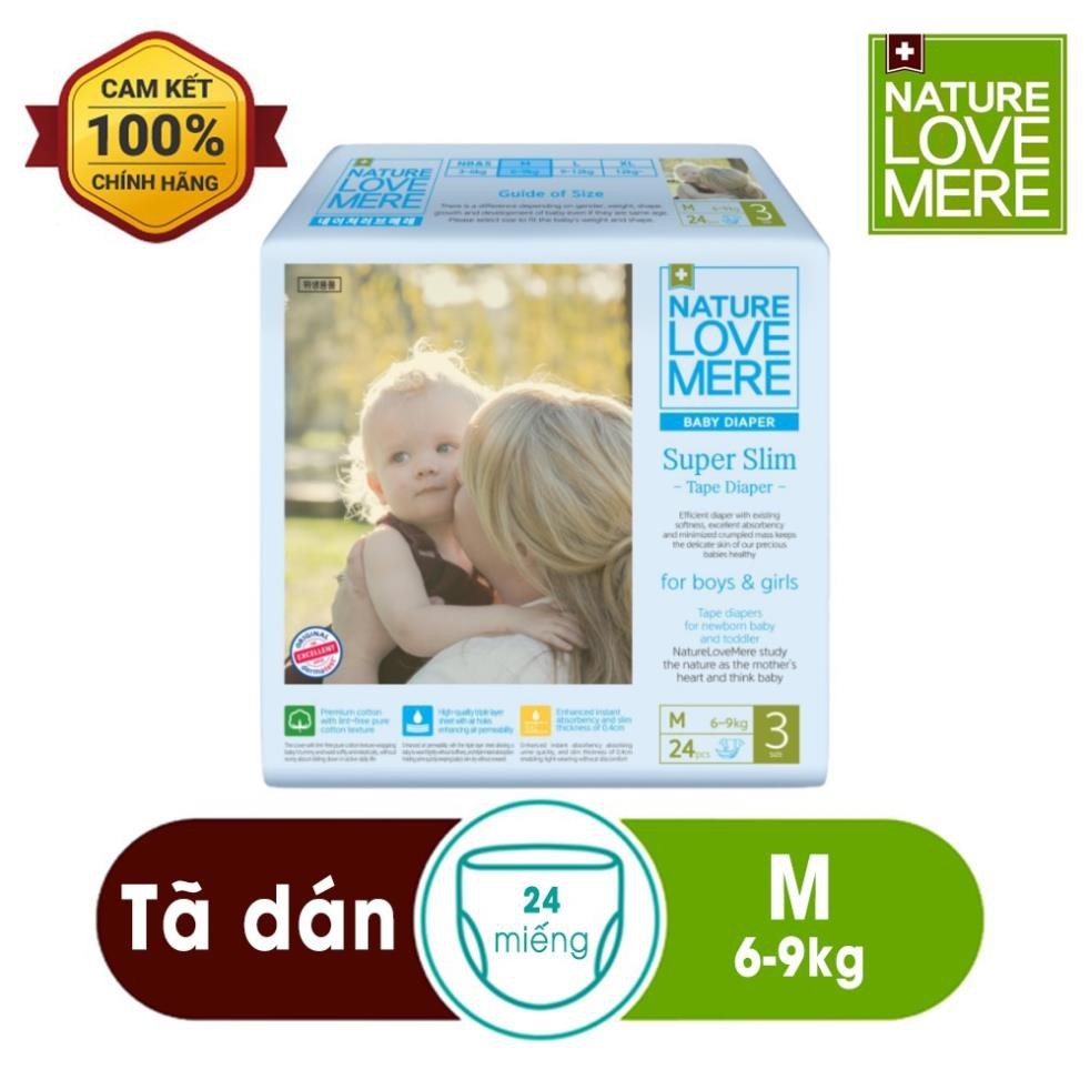 Tã/ Bỉm dán Super Slim Nature Love Mere túi S36/ M32/ L28/ XL24