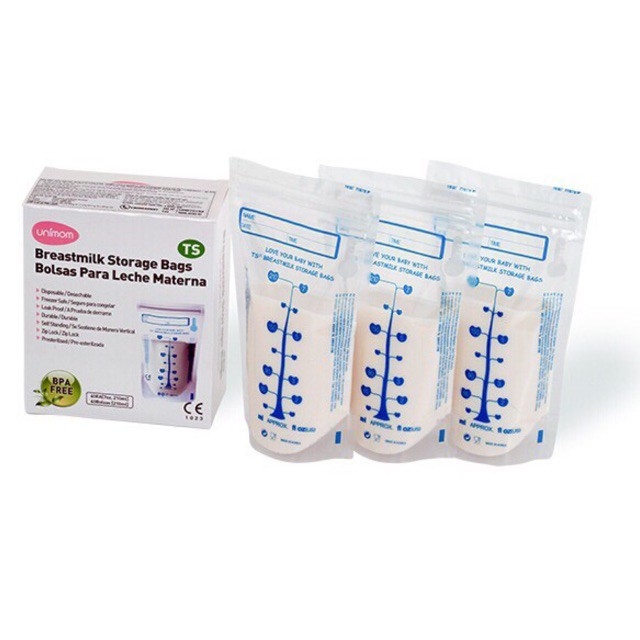 TÚI ĐỰNG SỮA MẸ (TRỮ SỮA MẸ) CẢM ỨNG NHIỆT UNIMOM TS KHÔNG CÓ BPA 210ML (30 TÚI/HỘP)