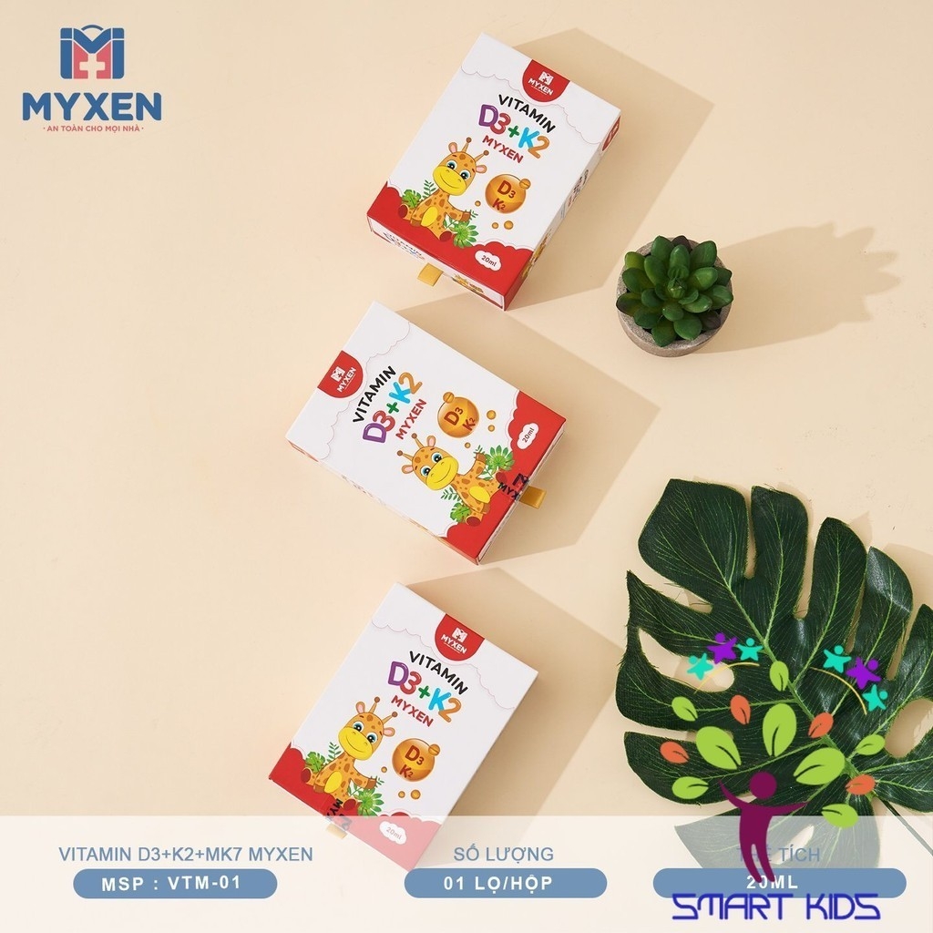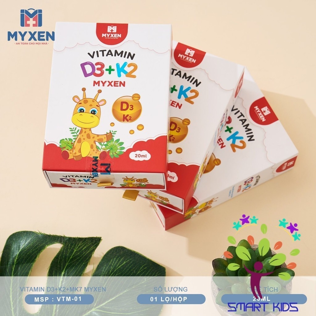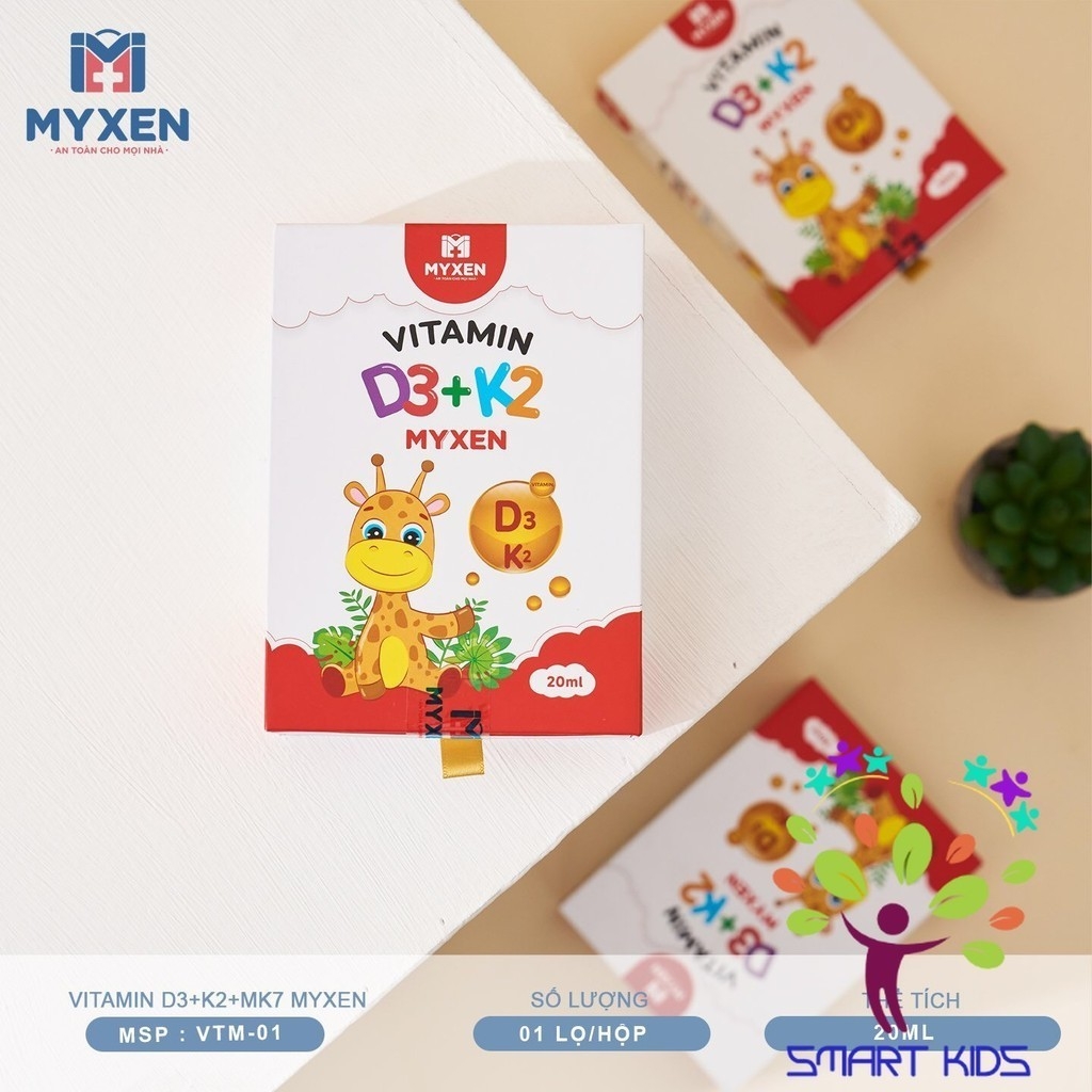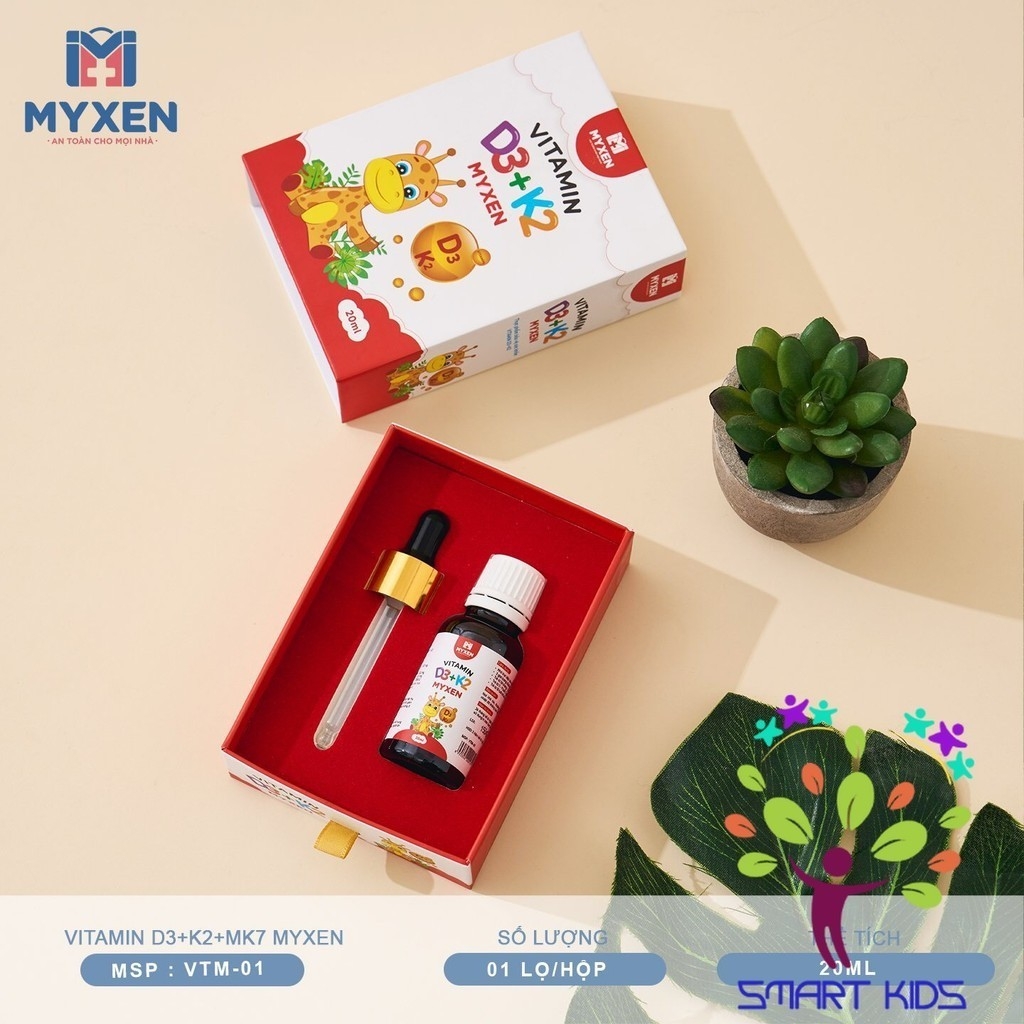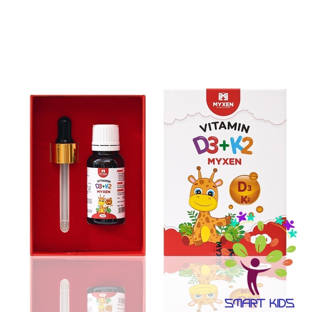 Thay vì phải chi trả khoảng 300k/ 1 lọ D3K2 cho các em bé thì nay các mẹ chỉ cần trả 185k cho 1 lọ D3K2 của nhà MYXEN thôi ạ 😍😍😍 ☘ Với thành phần : Trong mỗi 0.1ml ( 3 giọt) có chứa : - Vitamin K2 MK7 - Dầu cá( chứa 30% Omega3 , 12% DHA, 18% EPA) - Vitamin E Phụ liệu: dung môi( dầu hướng dương), chất chống oxy hoá, hương liệu tự nhiên ( hương cam) ☘️ Công dụng: Bổ sung vitamin D3, K2 cho cơ thể, hỗ trợ tăn cường hấp thu Canxi vào xương và răng, giúp xương chắc khoẻ hơn. Hỗ trợ giảm nguy cơ còi xương, chậm mọc răng ở trẻ em, loãng xương ở người lớn do thiếu D3 ☘️Đối tượng sử dụng: Trẻ em từ 6M trở lên( do thành phần DHA, vtm E,... cao) và người lớn cần bổ sung D3, K2, Người loãng Xương... ☘️Cách dùng: Lắc đều trước khi sử dụng: - Từ 6m-2y: 3 giọt/lần/ ngày - 3y-9y: 3 giọt/ lần * 2lần/ ngày - Từ 10y trở lên: 6 giọt/ lần * 2 lần/ ngày ✒️ SẢN PHẨM SẢN XUẤT PHÙ HỢP VỚI NGƯỜI VIỆT ĐƯỢC BỘ Y TẾ CẤP PHÉP ❤️ Dung tích: 20ml Thiết kế thông minh cải tiến dễ dàng sử dụng, mẹ thích nhỏ giọt hoặc dùng ống đong đều được. Sản phẩm được sản xuất bởi cty dược phẩm Bika Pharma - công ty chuyên cung cấp các sản phẩm mẹ và bé tại thị trường Việt Nam! Các mẹ nhanh chân đến các shop mẹ bé gần nhà để sắm cho bé yêu thôi nào.