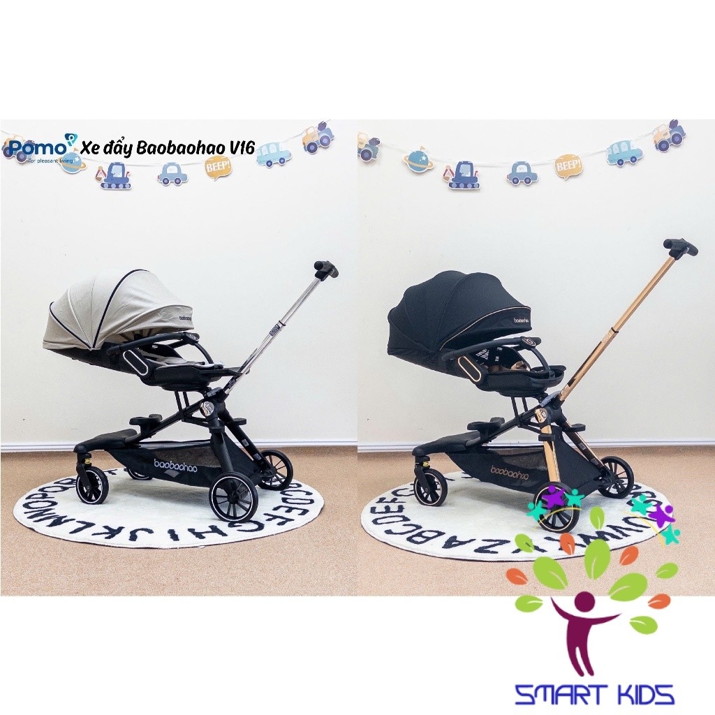 Thiết kế xe đẩy 2 chiều, xoay 360 độ, chế độ ngả linh hoạt, ngả sâu 175 độ dùng cho các bé từ sơ sinh luôn ạ.