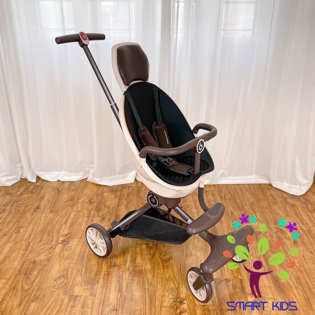 - Ghế xoay 360 độ để mẹ có thể đẩy bé 2 chiều, bé có thể nhìn mọi hướng chỉ cần 1 nút bấm chứ không cẩn tháo ghế ra như các phiên bản trước