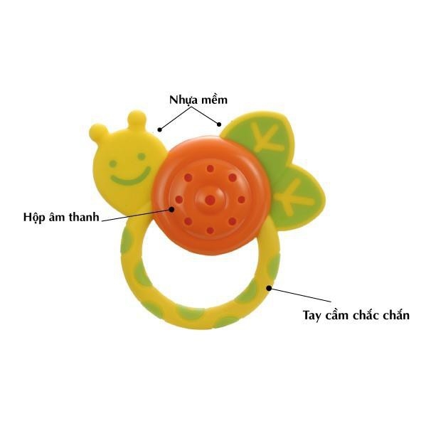 Các hạt xúc xắc bên trong khoang nhựa tạo ra âm thanh vui tai khi bé cầm, lắc, tăng sự kích thích cho bé.